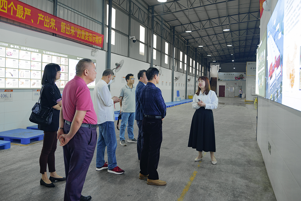 3月20日下午,廣東省福建商會常務副會長顏龍坤、蔡惠志,法律顧問鄭大梁以及秘書處一行走訪我司參觀交流,我司集團董事長兼廣東省福建泉州商會會長黃金盾、集團副總裁黃文才、商會執行會長林輝強等人熱情接待,在粵閩籍老領導受邀參加本次走訪交流活動。在我司集團客戶服務部張倩瑩的陪同下,來訪團參觀預制菜生產車間,詳細了解企業的經營情況以及業態情況。