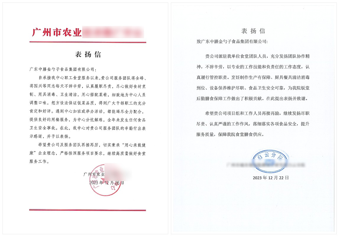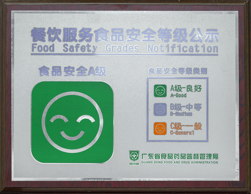 8月,金勺子團餐704門店整體服務及食品安全管理水平較高,先后被廣東省食品藥品監督管理局和廣州市市場監督管理局授予“食品安全A級”榮譽。