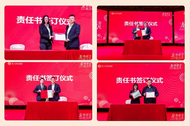 晚宴開始,集團同各職能部門、各分公司、各事業部代表分別簽訂責任目標書,旨在堅持“向管理要效益、向市場要潛力、向機制要活力”,齊心協力推動企業向高質量發展。