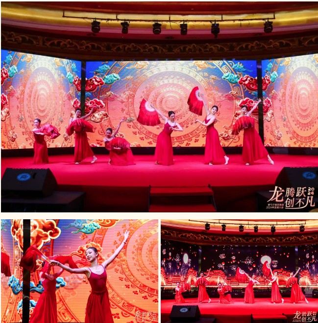 晚宴上,還設置了豐富多彩的歌舞表演、互動游戲,現場氣氛熱烈,一次次推向高潮,大家舉杯相聚,最后晚宴以快樂的抽獎互動畫上了完美的句號。